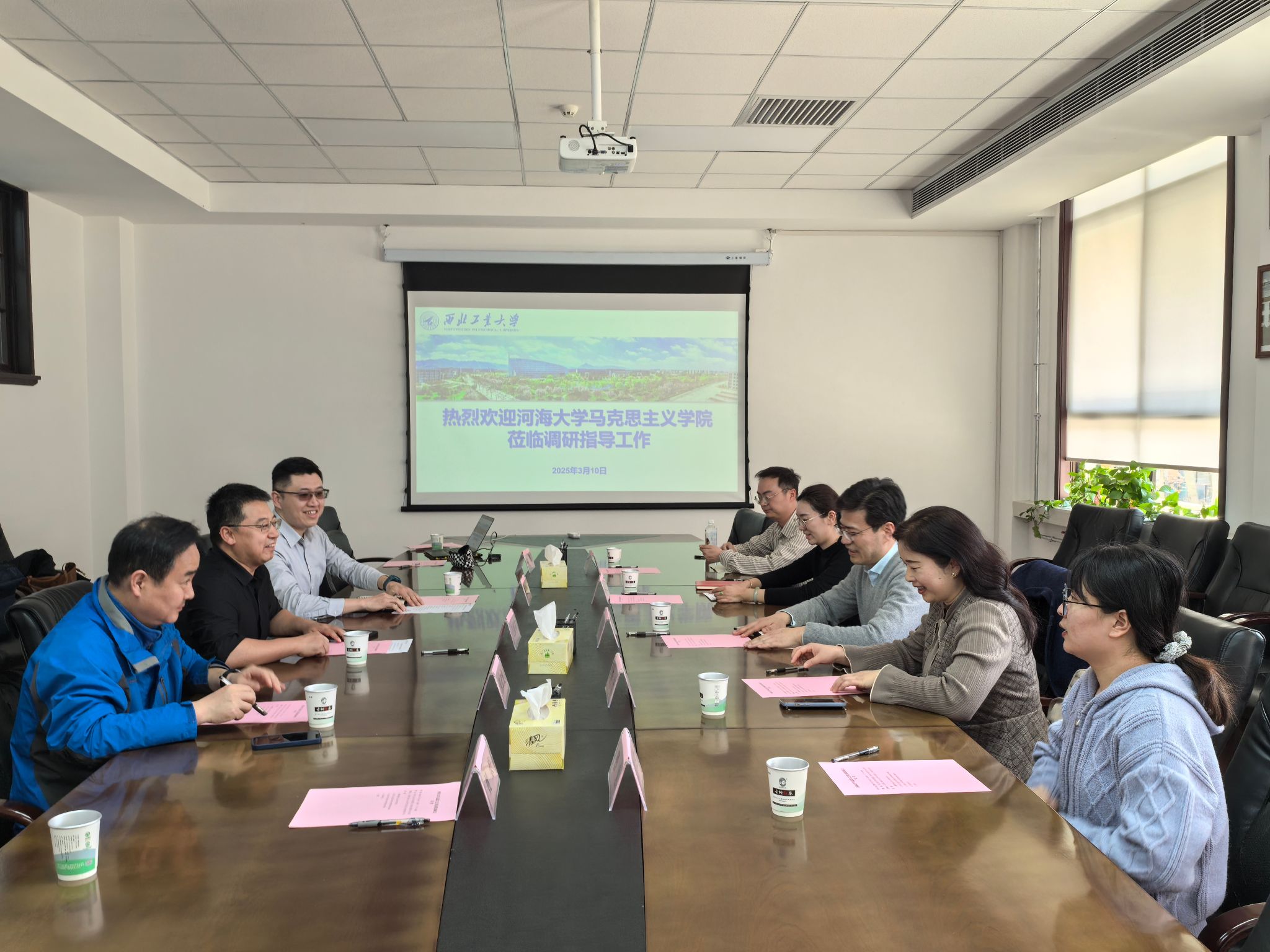 3月10日下午,河海大学3044am永利集团3044noc党委书记黄世虎,学院党委副书记、副院长李宁,团委书记、研究生辅导员张洁,本科生辅导员曹岩、李祥一行来学院调研。学院党委书记王彦革、副院长张云龙、学院党委副书记耿云辉、思想政治教育系教授姚崇、学工主管刘敏参加了此次调研会。会议由王彦革主持。