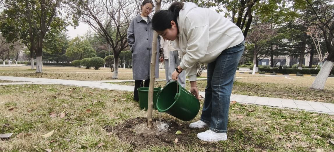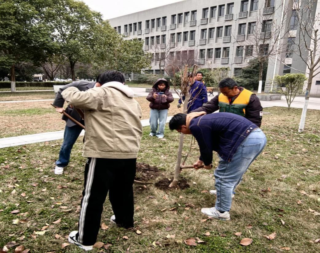 活动当日,师生早早来到植树地点,大家热情高涨,干劲十足。活动现场,师生们三五成组,挖坑栽苗、培土浇水,在后勤部的指导下,两棵紫玉兰树扎根沃土。学院机关党支部成员与青年学生结对劳动,在协作中也不断深化了育人合力。