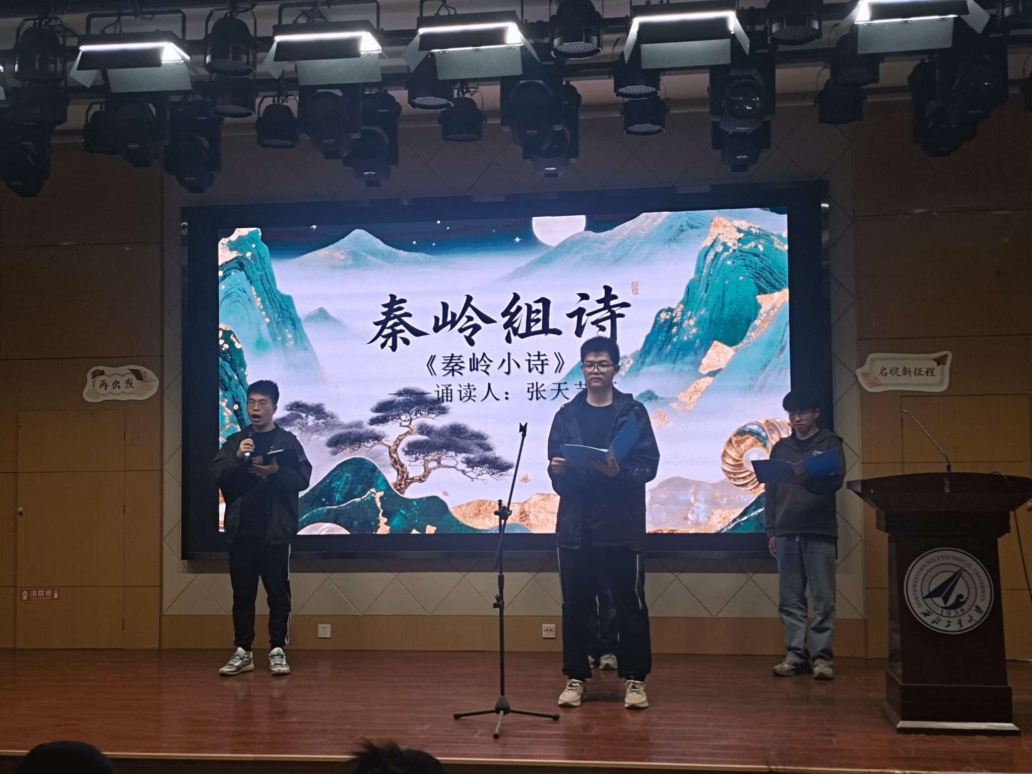 4月19日晚,在3044am永利集团3044noc207报告厅,参加诗歌朗诵会的同学经过抽签,筛选出来自全校的十个朗诵小组,现场朗诵并表演他们自创的诗歌作品,其余同学提交朗诵视频参赛。这些作品有的抒写家乡建设的成就、生态文明的奇迹,有的讴歌共和国筚路蓝缕的历程、祖国日新月异的巨变,有的表达对科技前辈的尊敬与仰望、科技喜报频传的自豪,有的遥想古路坝灯火、表达今日工大学子进取奋发的豪情,有的抒发青春理想、礼赞科技报国……现场诗声琅琅、同学们激情澎湃,展现出西工大学子奋进向上的昂扬风貌。