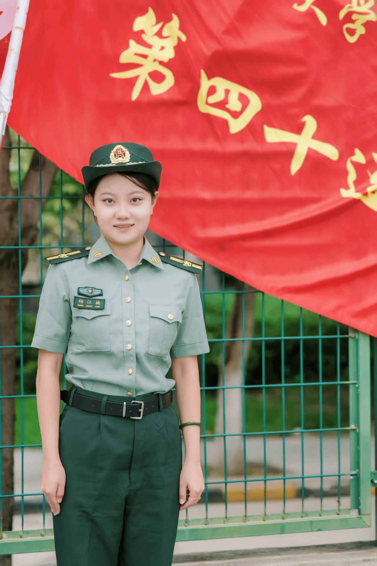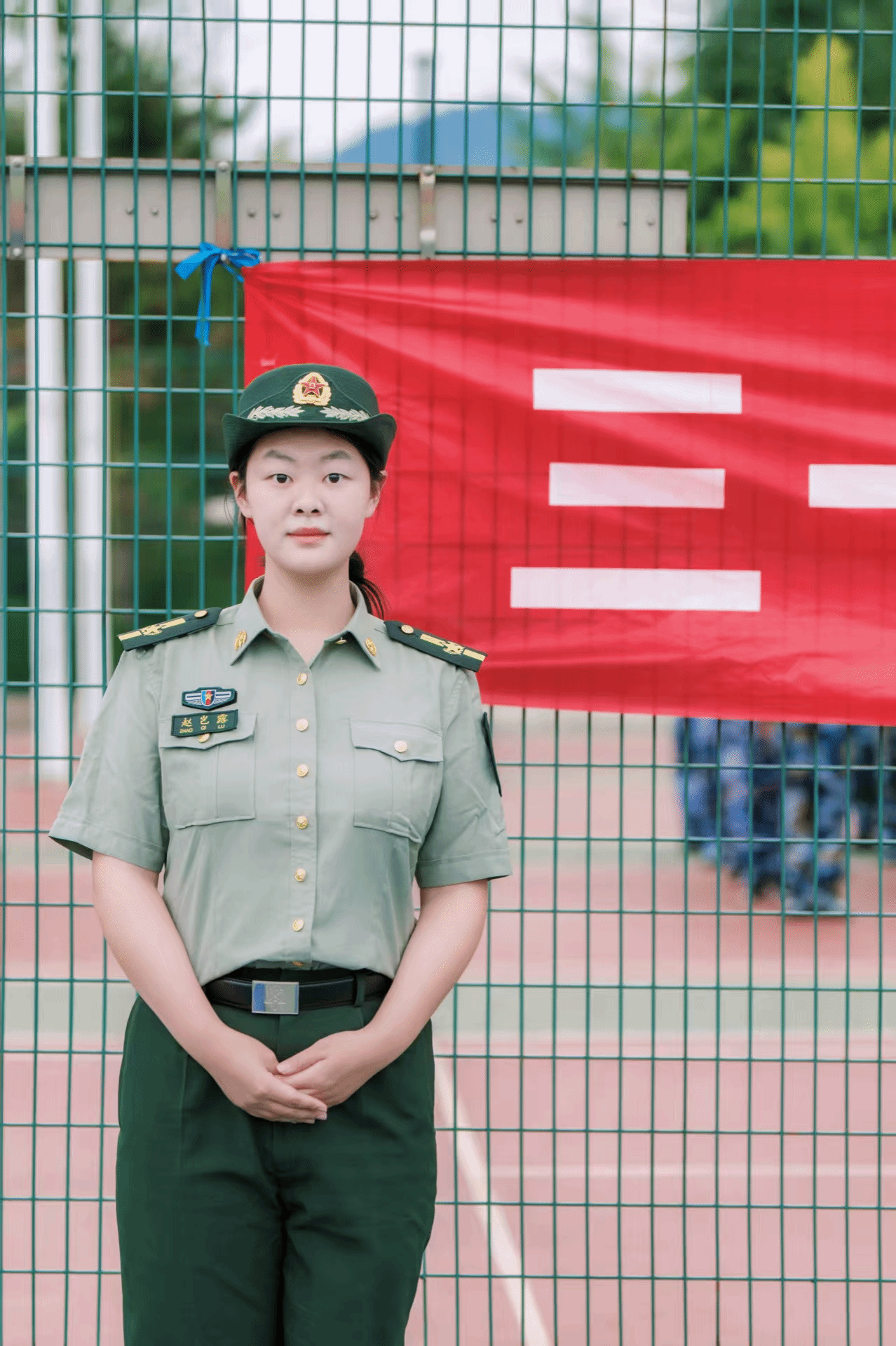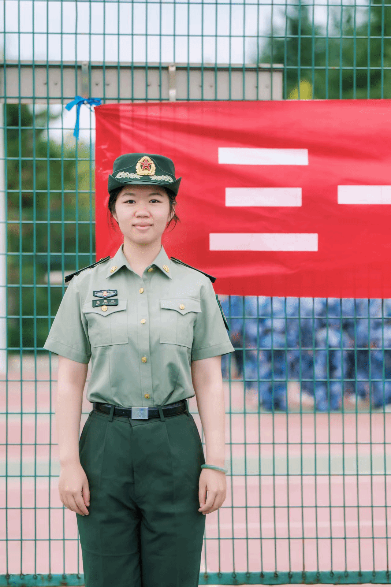麦吾兰·麦麦提敏,学院2025届硕士毕业生,目前在党委学生工作部任职,此次担任军训师三团18连指导员