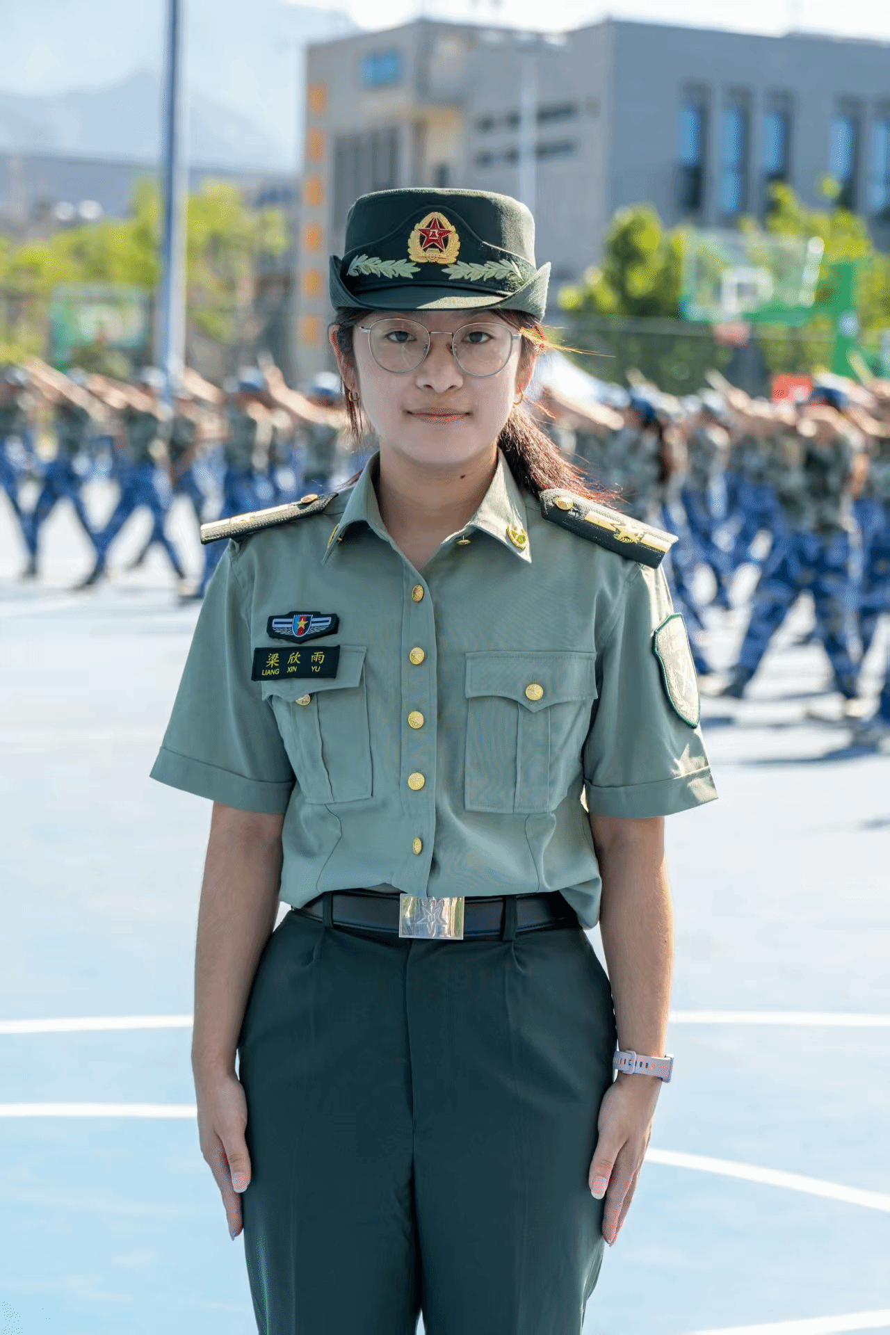 梁欣雨:作为马克思主义理论专业研究生,我以军训副指导员身份扎根训练场,在列队训练中讲纪律背后的家国担当,在同学想放弃时用理论激励斗志,让学院“使命光荣”从书本落到实践。