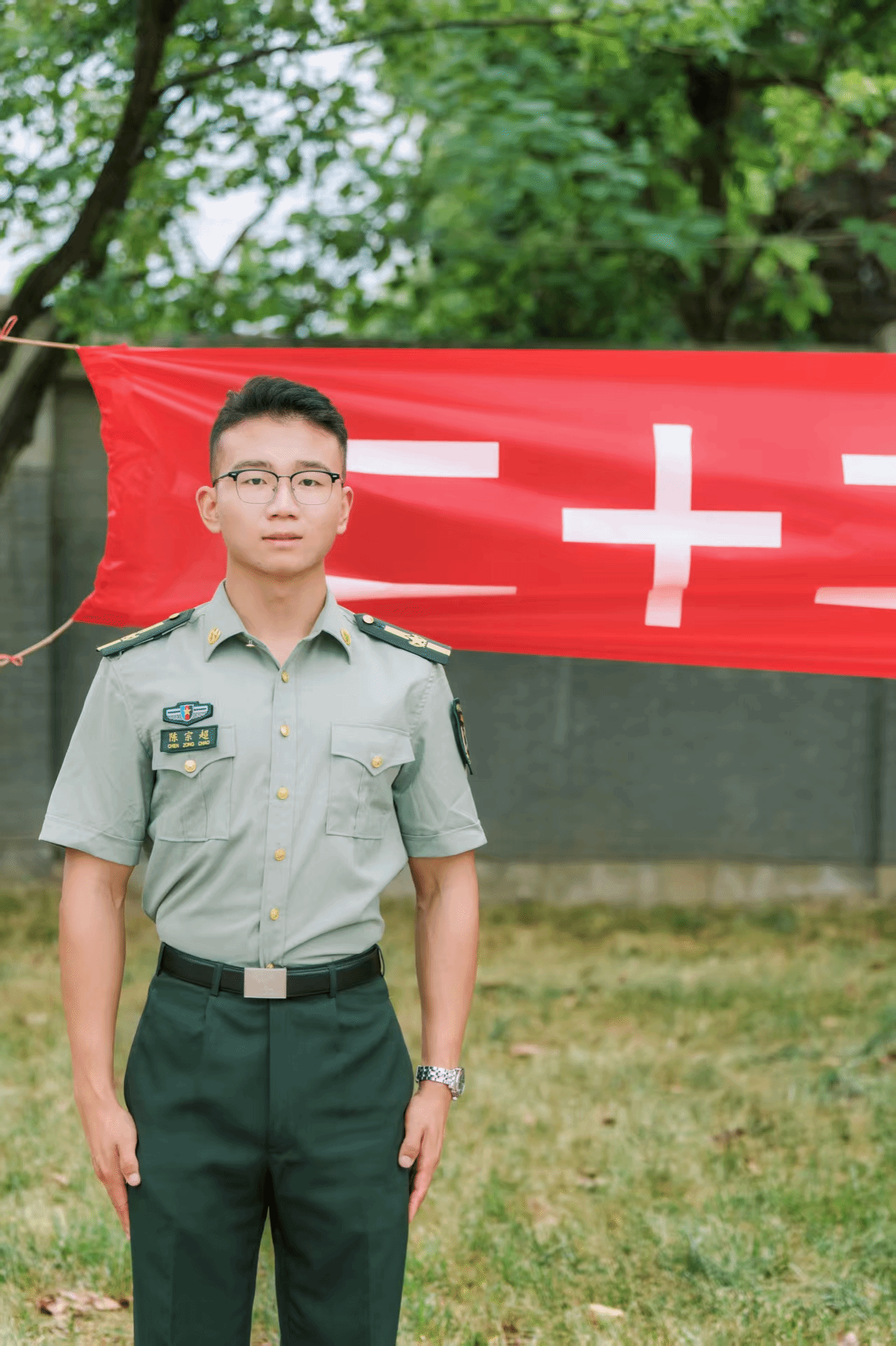 丘晨川,学院2023级硕士研究生,曾服役于中国人民解放军海军,此次担任军训师四团31连指导员