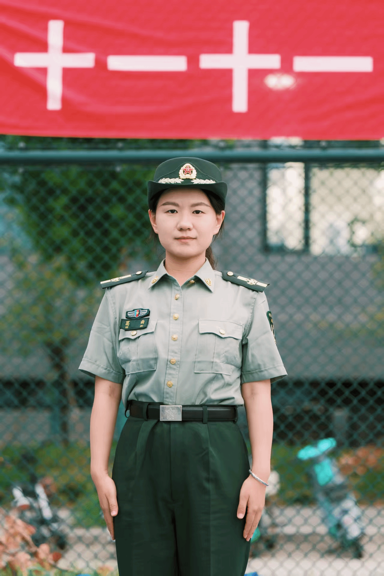 葛曲,学院2024届博士毕业生,目前在玛丽女王学院任职,此次担任军训师二团11连指导员