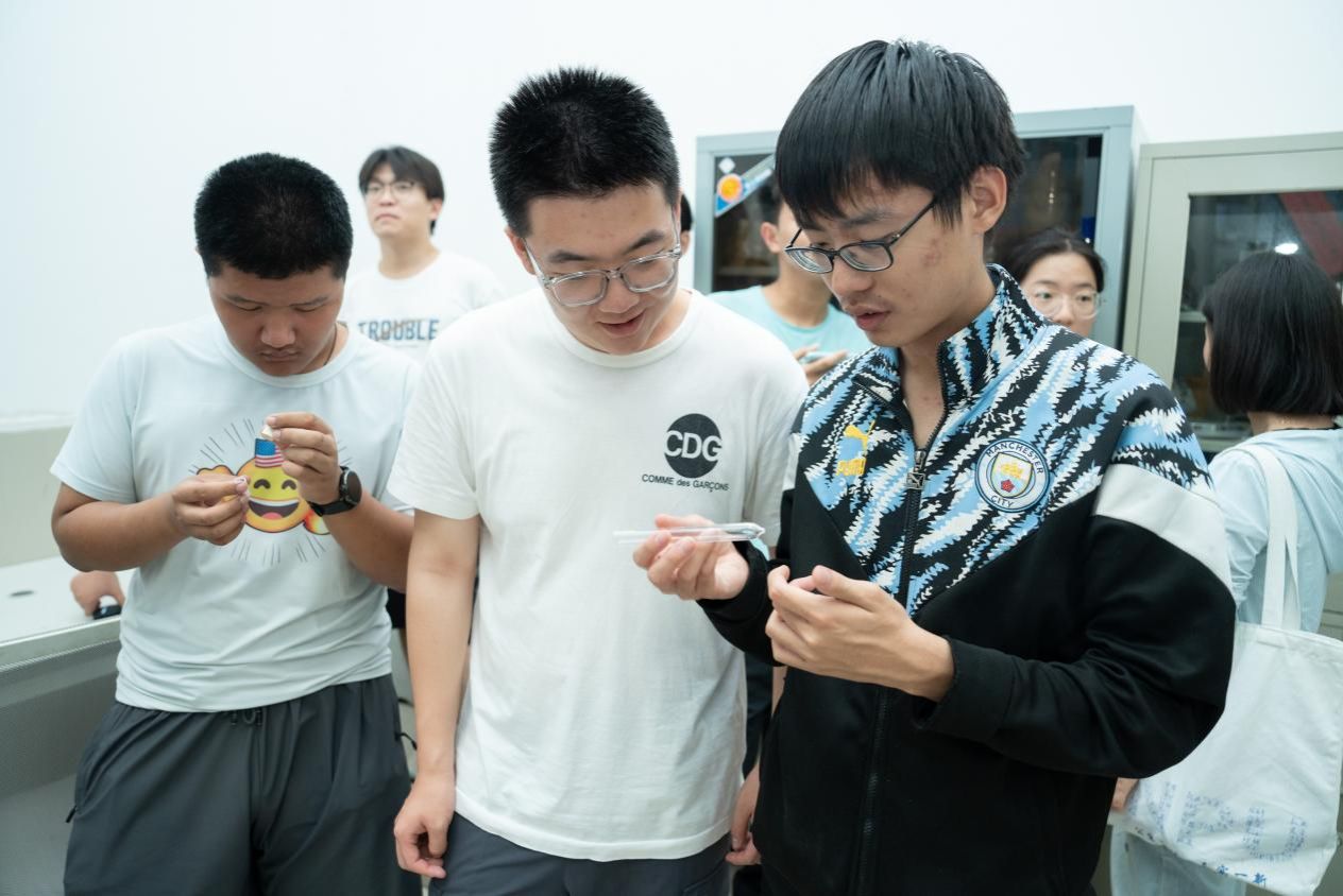 在翟薇教授带领下,同学们先后参观了高真空落管实验装置实验室、静电悬浮实验室、电磁悬浮实验室、超声悬浮实验室、气动悬浮实验室等,参观过程中,实验室的研究者不仅现场演示了部分设备的运行原理,而且还耐心解答学生提问。