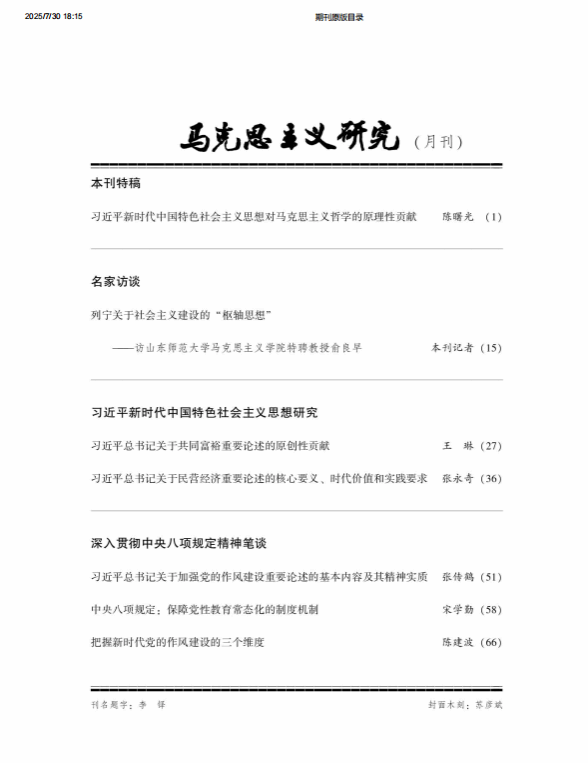 我院张永奇教授在权威期刊《马克思主义研究》2025年第7期发表题为《习近平总书记关于民营经济重要论述的核心要义、时代价值和实践要求》的学术论文,深入研究、阐释、宣传习近平经济思想,产生广泛学术影响。