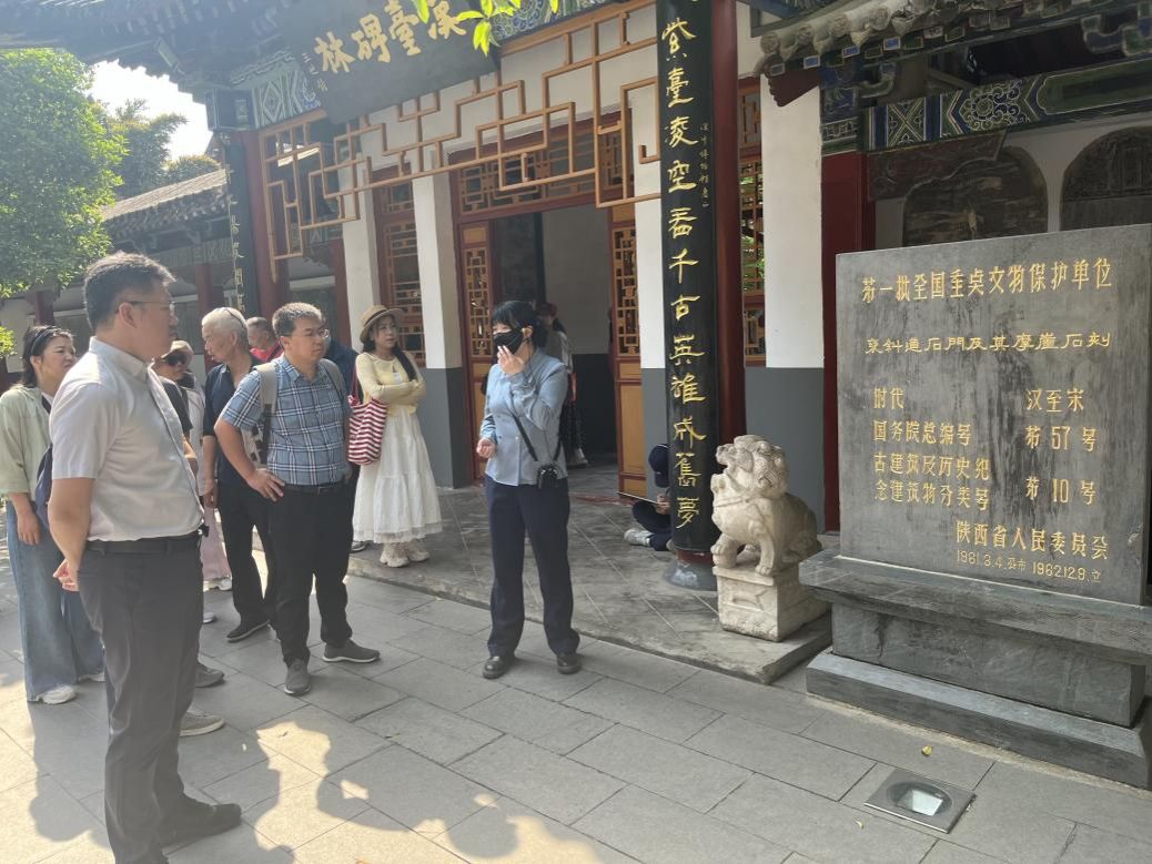随后,大家来到古汉台——汉中市博物馆参观学习。这里是习近平总书记2023年7月考察汉中的首站。在讲解员的带领下,同学们细致参观了望江楼、石鼓亭等历史建筑,仔细观摩“石门十三品”等国家一级文物。博士生第一支部韩瑞欣同志带领大家回顾了两年前习近平总书记参观的场景,同志们循着总书记的足迹,重温他“守护好中华文脉,并让文物活起来,扩大中华文化影响力”的殷殷嘱托,更加深刻地理解了“两个结合”的重要意义。