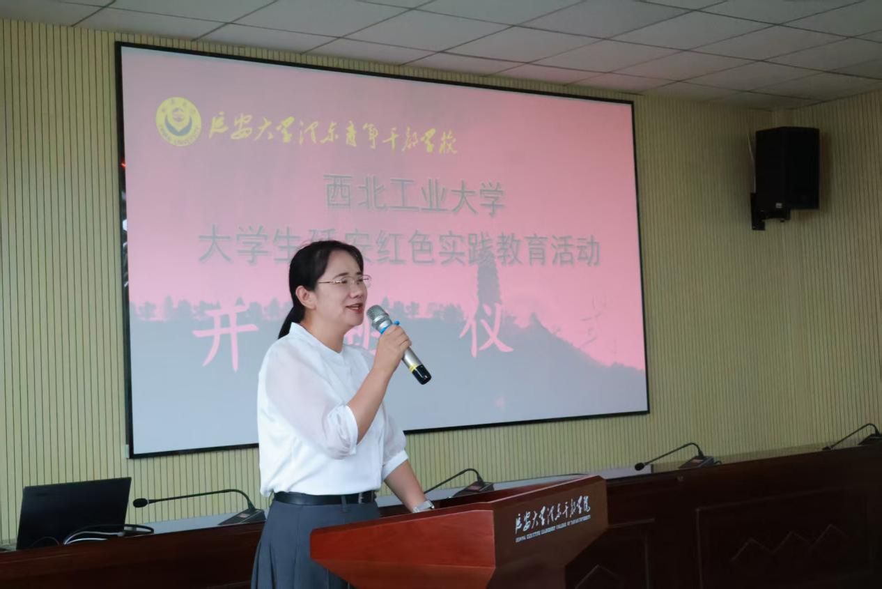 理论课堂的地点选在了三川交汇处的延安大学。这所由我党首创的综合性大学,厚重的红色文化底蕴仍浸润在校舍的一砖一瓦之中。延安大学泽东青年干部学校副校长王娜为此次实践教育活动致辞并授旗。同行的光电与智能研究院的侯祥晴老师以“积极向党组织靠拢,从撰写入党申请书开始”为题,与同学们开展了一场意义非凡的专题研讨教学。