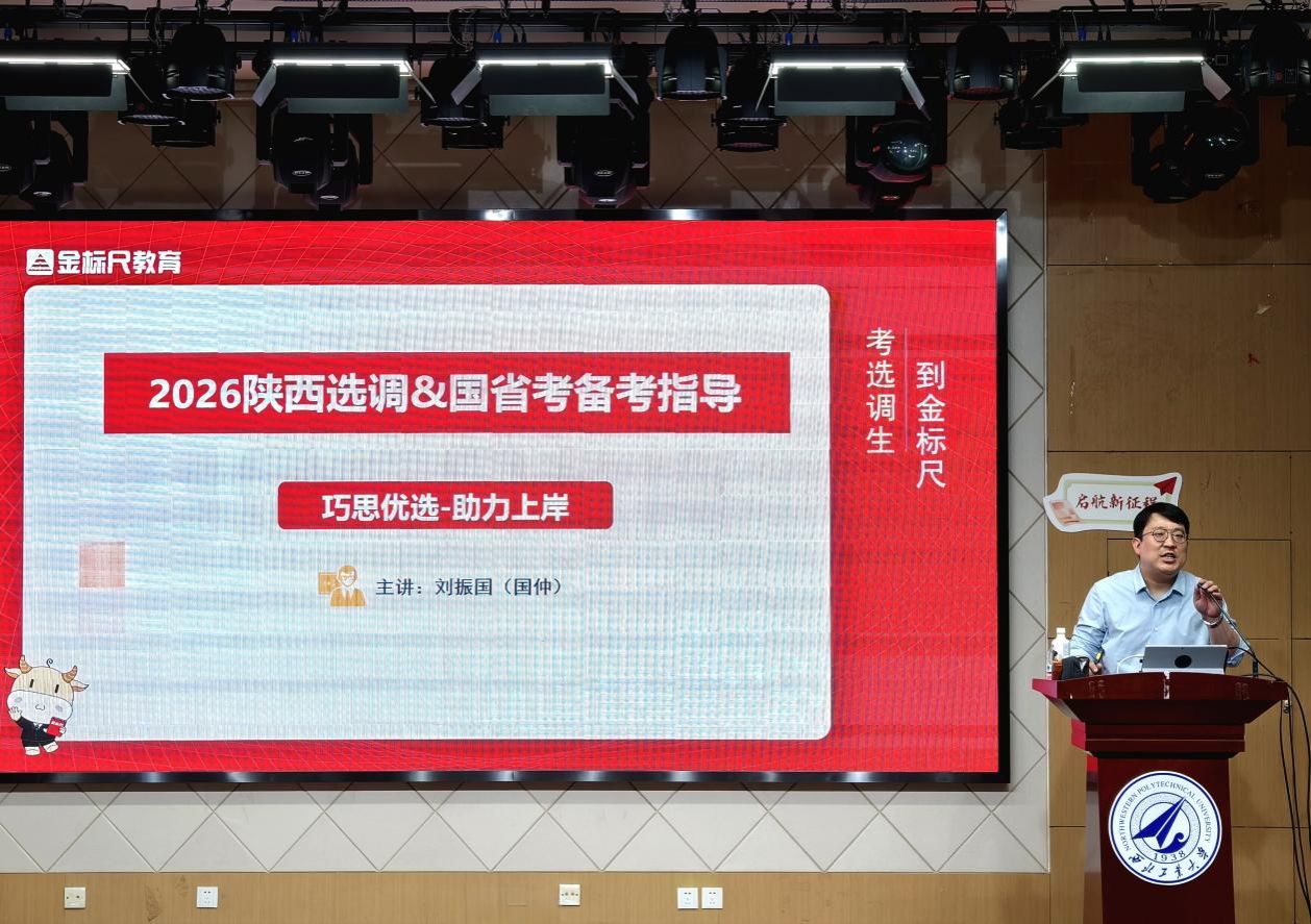 随后,国仲老师围绕选调生、公务员等学生关切的就业方向,从考试公告解读、备考技巧、备考指导三个方面进行了系统讲解,重点解析了陕西选调与国考省考的考情动态和发展趋势,并结合真实案例分析了备考中的常见问题和高效策略。