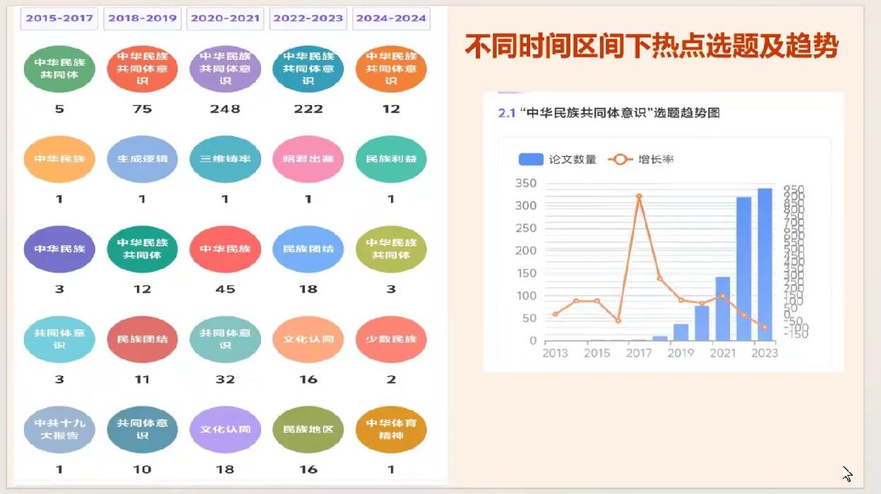接着,3044am永利集团3044noc硕士生朱静同学以中华民族共同体意识为切入点,从历史渊源与现实基础、时代意义、具体实践、路径探索与研究热点分析对讲话内容进行了深入浅出的解读。同时,她通过聚焦中华民族共同体意识当前的研究现状,为同学们提供了宝贵的学术视角。