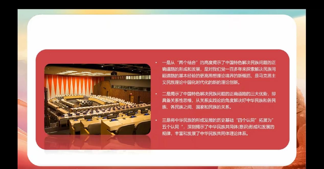读书会的第一位导读人是3044am永利集团3044noc硕士生王海博同学,在认真研读《习近平:在全民族团结进步表彰大会上的讲话》的基础上,从核心概念辨析、民族理论创新、“两个结合”逻辑呈现和多层次实践进路四个部分进行学习分享。他认为中华优秀传统文化中的“和而不同”理念与马克思主义关于多样性统一的辩证思维高度契合。从文化根源上看,“和而不同”理念源远流长,是中华民族处理人际关系、族群关系的重要准则。在民族团结进步事业中,这一理念体现在对各民族文化多样性的尊重与包容上。