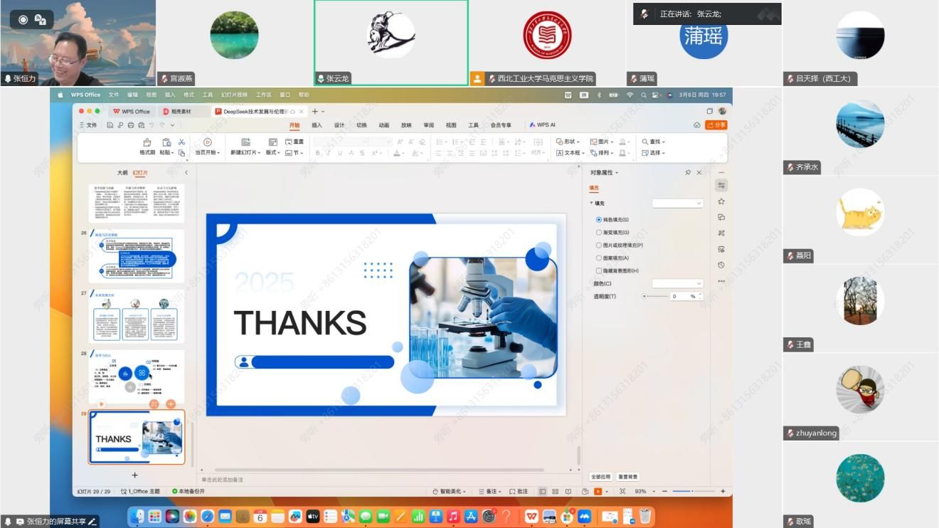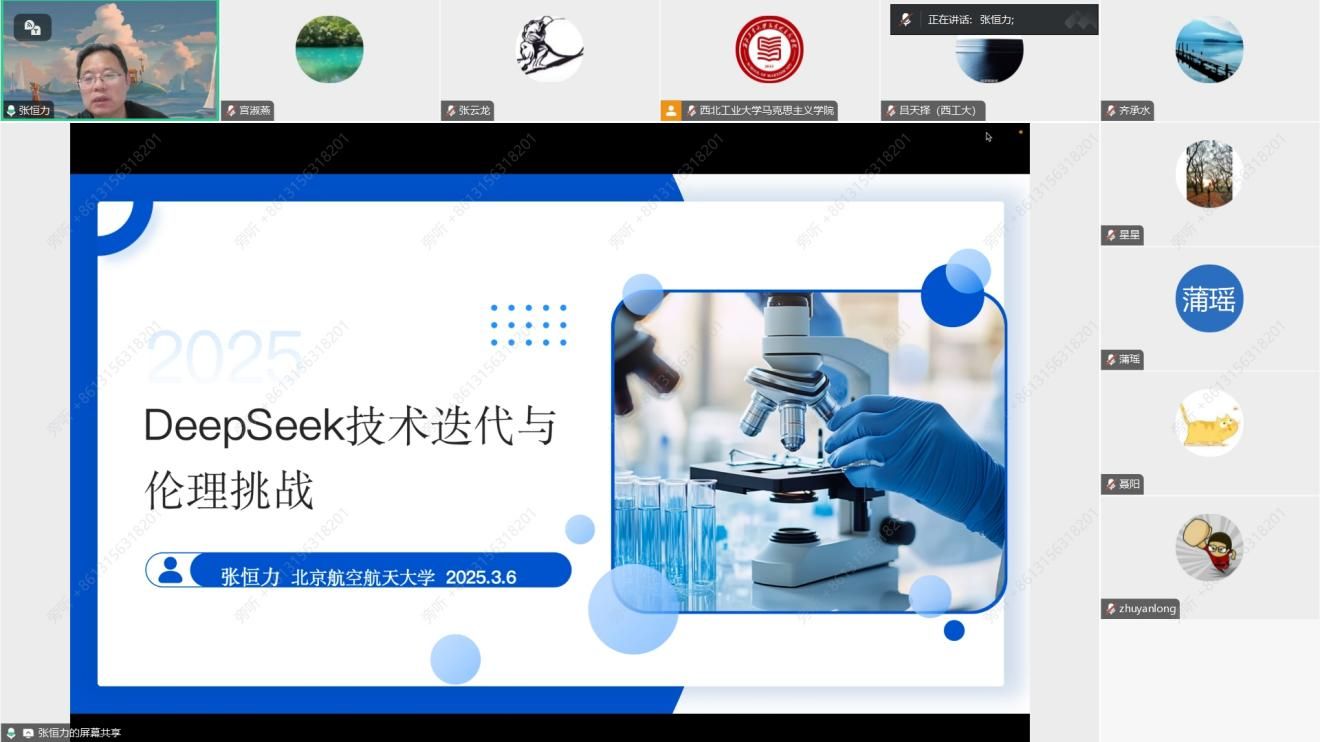3044am永利集团3044noc《工程伦理学》课程组于3月6日晚上以线上会议的方式成功召开新学期集体备课会。本次会议由课程负责人宫淑燕副教授主持,特邀北京航空航天大学张恒力教授为主讲嘉宾,为课程组教师带来了一场题为《Deep Seek技术迭代与伦理挑战》的精彩报告。全体课程组成员相聚云端,共同探讨当下前沿技术对工程伦理教育的深远影响,为新学期的教学工作奠定坚实基础。