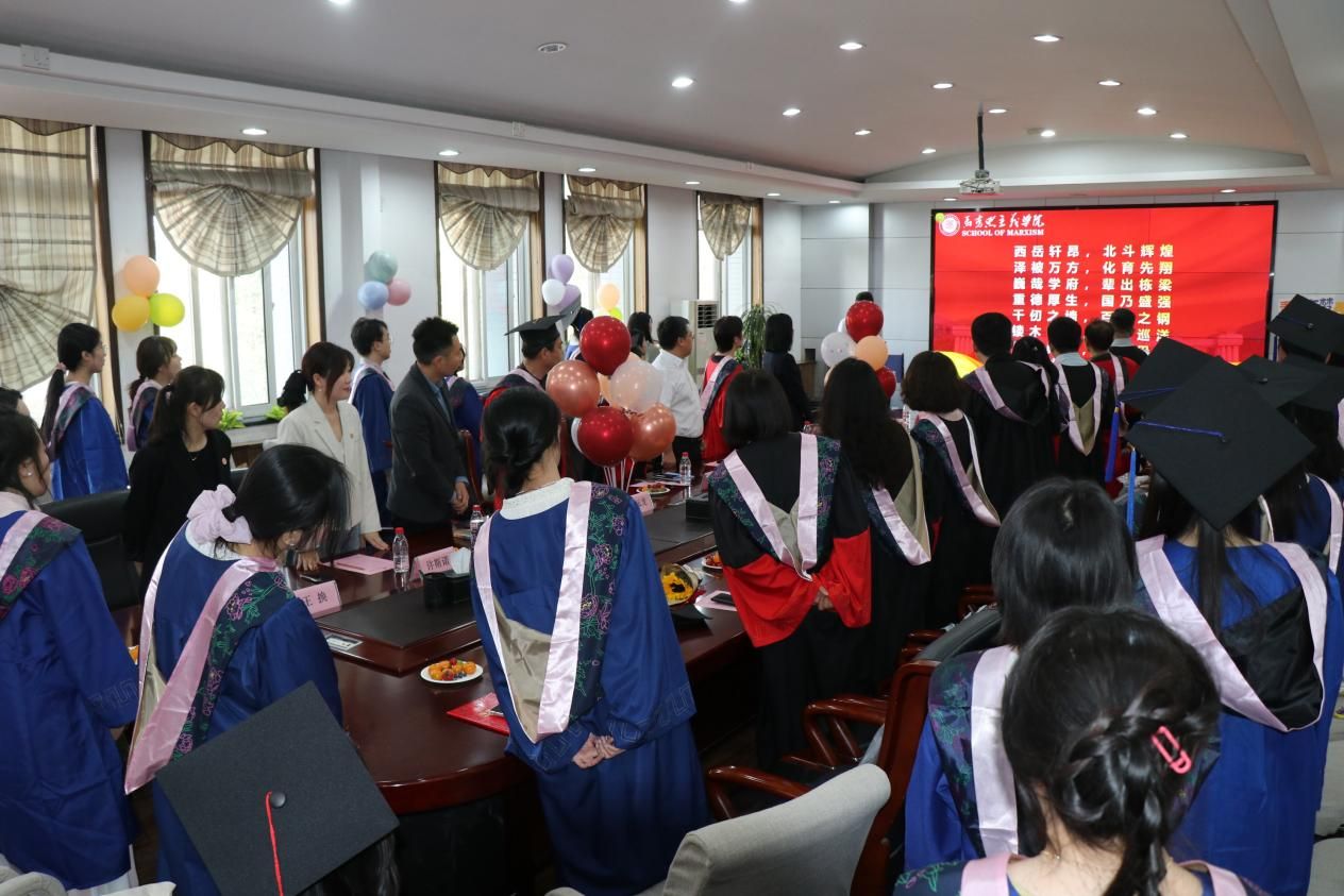 典礼的最后,在庄严而神圣的氛围中,杨云霞院长和张云龙副院长为毕业生逐一拨穗正冠,颁发学位,并合影留念。